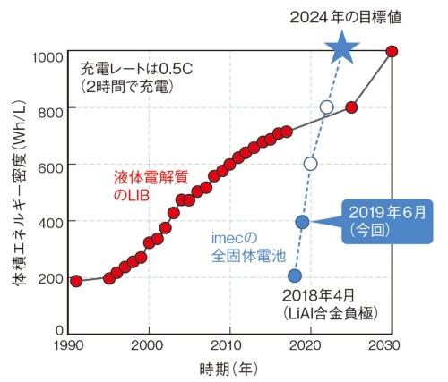 不同之處在于,使電解質(zhì)干燥后變?yōu)楣腆w從而形成負極。實現(xiàn)起來也較容易,只需要在量產(chǎn)時對現(xiàn)有的電解液電池用裝置進行略微的變更,就可以很好地利用,因此即使是全固體電池,也沒有必要對其進行高額投資。實際上,IMEC目前已基本確立了批量生產(chǎn)大型電池的技術,該公司計劃在2019年內(nèi)進行尺寸大小為A4、容量為5Ah的電池試制。