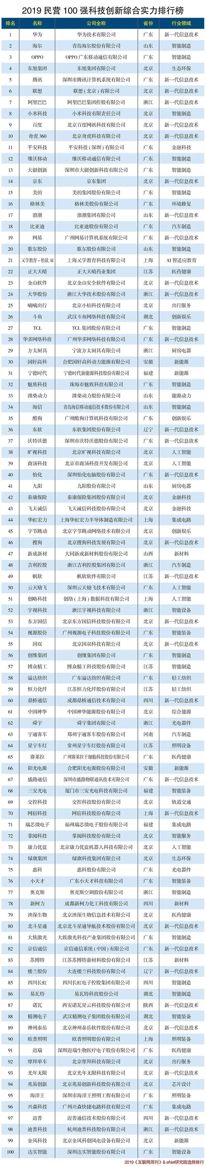 2019年8月,由中國科學院主管的《互聯網周刊》聯合eNet研究院發布了2019民營100強科技創新綜合實力排行榜。根據排名顯示,榜單的前十名分別為華為、海爾、OPPO、東旭集團、騰訊、聯想、阿里巴巴、小米科技、百度、奇虎360。中國粉體網小編發現,該榜單中有以下幾家企業在粉體材料的科技創新上有突出的表現。