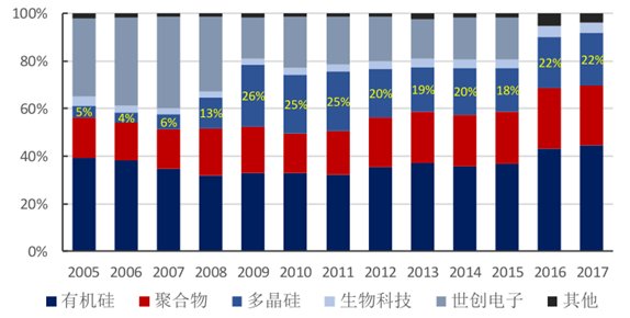 瓦克是一家全球運(yùn)營(yíng)的化工集團(tuán),共有員工約14,500人,年銷(xiāo)售額約達(dá)49.8億歐元(2018年)。當(dāng)前業(yè)務(wù)板塊包括有機(jī)硅、聚合物、多晶硅和生物科技等,并在有機(jī)硅、多晶硅及聚合物板塊中的乳膠粉和VAE共聚乳液等領(lǐng)域占據(jù)全球龍頭地位。近年來(lái)多晶硅板塊占公司整體營(yíng)收的比重在20%左右。