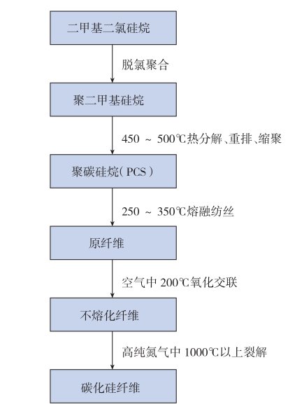 先驅體轉化法是由日本東北大學矢島教授等人于1975年研發,包括先驅體合成、熔融紡絲、不熔化處理與高溫燒結4大工序。