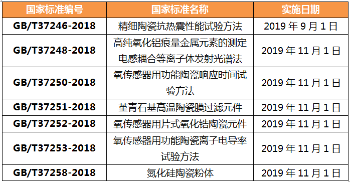 附陶瓷行業(yè)其他標準的實施情況