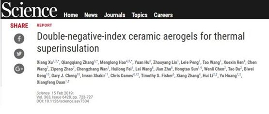 2019年,段鑲鋒/黃昱攜手哈工大Science:超級氣凝膠隔熱材料!