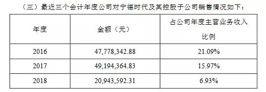 星云股份是鋰電池充放電設備領域的佼佼者,一直以來公司與寧德時代保持著長期緊密的合作關系。公告顯示,近三年來星云股份對寧德時代的銷售額占公司年度營收的比重分別為21.09%、15.97%、6.93%。