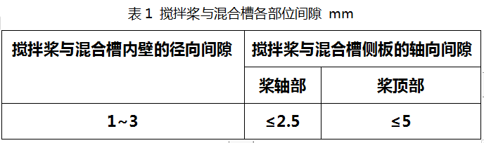 1)攪拌槳與混合槽各部位間隙應符合表1的規定,攪拌槳運轉與混合槽無碰擦。