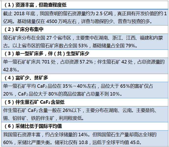 此外,我國螢石礦產具有一定特點,如采儲比嚴重失衡,富礦少,貧礦多,有效儲量不足等。