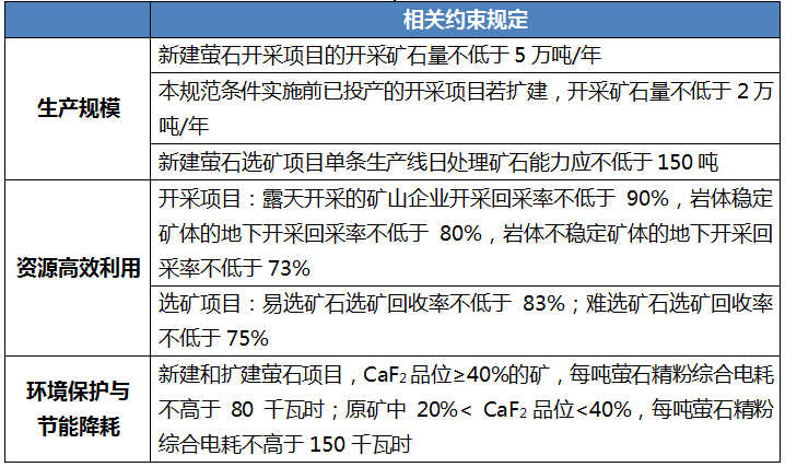 《螢石行業規范條件(征求意見稿)》提出的行業相關約束規定