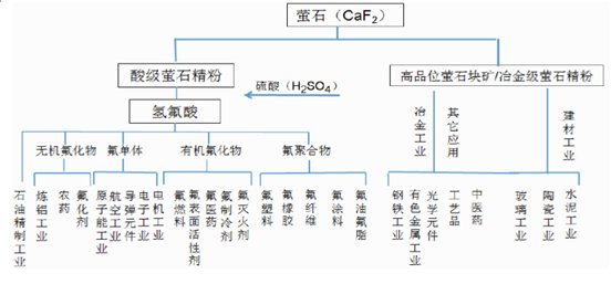 螢石下游行業分布廣泛,其中氟化工產業對螢石的需求量最大。