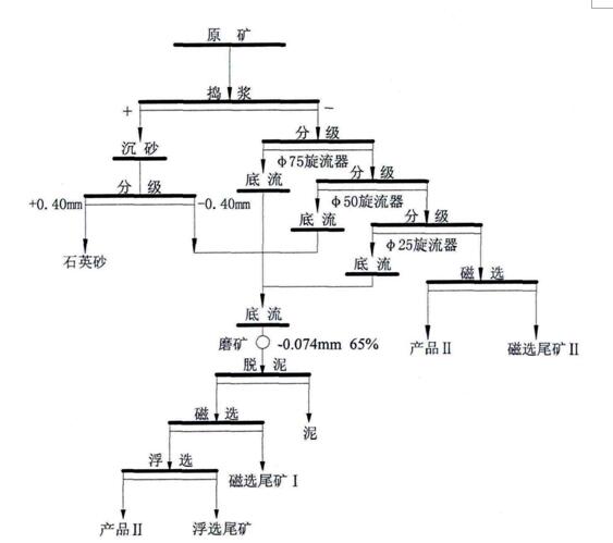 來自武漢理工大學的王浩曾在《砂質高嶺土的工藝礦物學及選礦試驗研究》中總結出:高嶺土選礦中提純中搗漿適宜的工藝條件為:搗漿濃度為60%,搗漿時間為20min,分散劑用量為2kg/t。經過搗漿除砂后,調節礦漿濃度為24%φ75、φ50、φ25水力旋流器分級提純。對高嶺土選礦提純過程中的尾砂進行綜合利用,部分石英砂作建筑用砂。