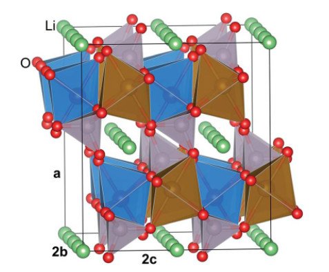 LiMnPO4屬于橄欖石型結構,正交晶系,空間群為Pnma。其晶胞參數為a=1.04448nm,b=0.61018nm,c=0.47313nm,每個晶胞中有4個LiMnPO4單元。晶體骨架由MnO6八面體及PO4四面體組成。