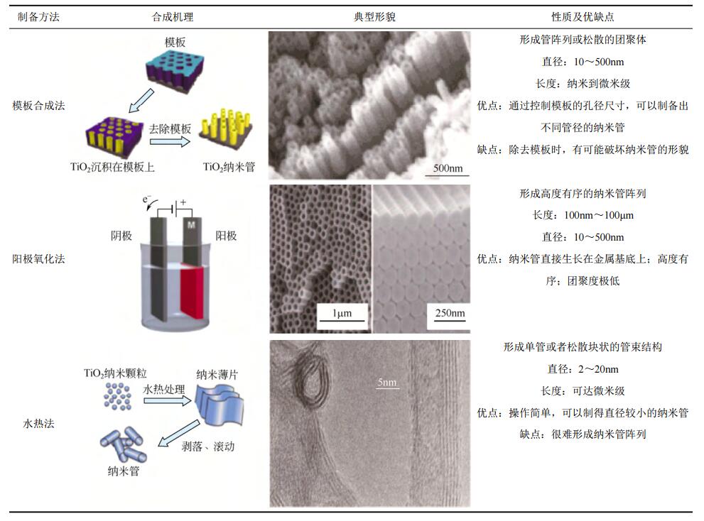 目前TiO2納米管的制備方法主要有模板合成法、陽極氧化法和水熱合成法3種。