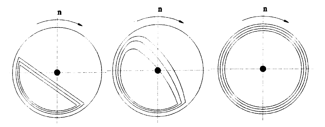 球磨機(jī)的粉磨作用,主要靠球磨體對物料的沖擊和研磨。球磨體在磨筒內(nèi)的運動包含了幾種不同的形式,有的貼附在筒壁上隨之向上運動,有的向下滑動滾動,還有的以拋物線規(guī)律作拋射運動。