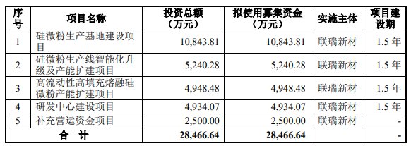 另外,公司招股說明書顯示,聯瑞新材擬募集資金共計2.85億元,用于硅微粉生產基地建設項目、硅微粉生產線智能化升級及產能擴建項目、高流動性高填充熔融硅微粉產能擴建項目、研發中心建設項目、補充營運資金項目。