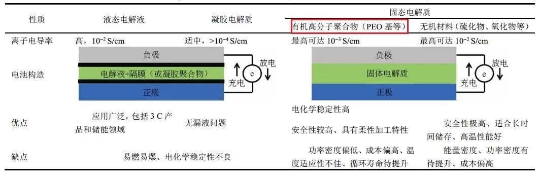 不同種類電解質(zhì)及其鋰離子電池體系的性質(zhì)對比