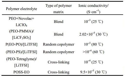 環(huán)氧乙烷(PEO)基聚合物電解質(zhì)