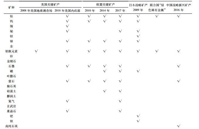 ▪郭佳等.全球主要戰(zhàn)略性礦產(chǎn)名錄評價因素對比研究