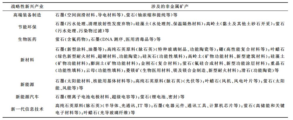 戰(zhàn)略性新興產(chǎn)業(yè)涉及的主要非金屬礦產(chǎn)