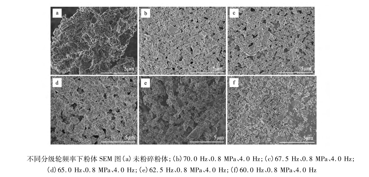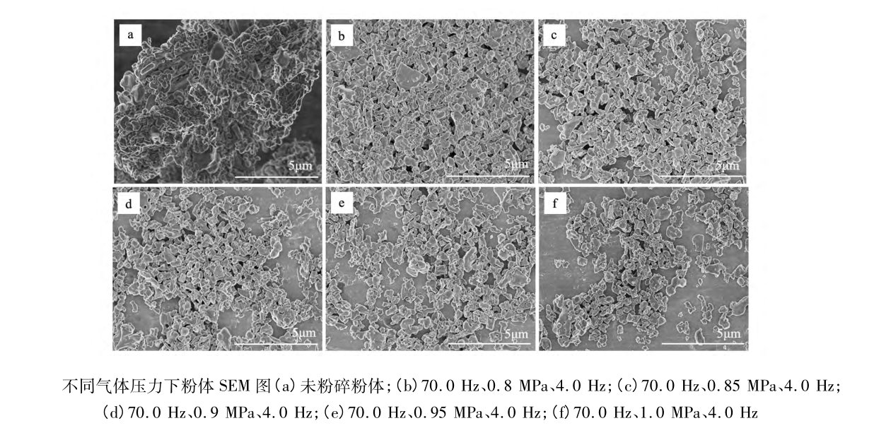 (1)氣流粉碎能夠有效提高粉體的分散性,降低粉體的粒度,使粉體的分布范圍由原來的0~60μm降至0~6μm;