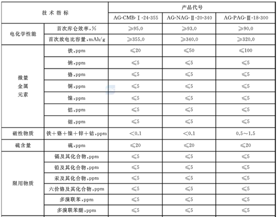 2020年2月1日起,GB/T 24533-2019《鋰離子電池石墨類負極材料》將代替GB/T 24533-2009《鋰離子電池石墨類負極材料》正式啟用。本標準規定了鋰離子電池石墨類負極材料的術語和定義、分類及代號、技術要求、試驗方法及檢驗規則等。適用于鋰離子電池作為負極使用的石墨類負極材料。