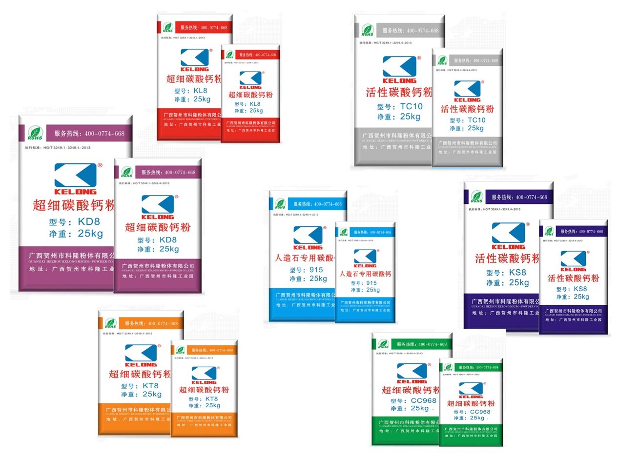 公司目前已經(jīng)有普通重質(zhì)碳酸鈣、人造石專用碳酸鈣、TC系列碳酸鈣、KL系列碳酸鈣、KT系列碳酸鈣、KD系列碳酸鈣、KS系列碳酸鈣7大類型的碳酸鈣產(chǎn)品,在各系列下又進(jìn)行細(xì)分。產(chǎn)品原料都選自賀州優(yōu)質(zhì)碳酸鈣,經(jīng)過選礦、清洗、破碎及均化等預(yù)處理后,再通過大型超細(xì)粉碎生產(chǎn)設(shè)備進(jìn)行粉碎、精細(xì)分級而成。