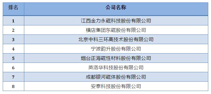 高性能釹鐵硼永磁材料應用于高技術壁壘的產品,主要是各種型號電機、壓縮機、傳感器,包括傳統汽車EPS、新能源汽車驅動電機、風力發電、變頻家電、節能電機等。2019年,稀土磁性材料產量保持平穩增長。其中,燒結釹鐵硼毛坯產量17萬噸,同比增長9.7%;粘結釹鐵硼產量7900噸,同比增長5%;釤鈷磁體產量2400噸,同比增長4%。一起來關注一下全國前十家稀土永磁材料公司。
