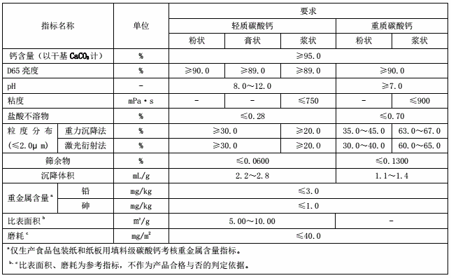 本標準規定了造紙用碳酸鈣的術語和定義、分類、要求、試驗方法、檢驗規則及標志、包裝、運輸、貯存。適用于造紙填料和涂料用碳酸鈣。
