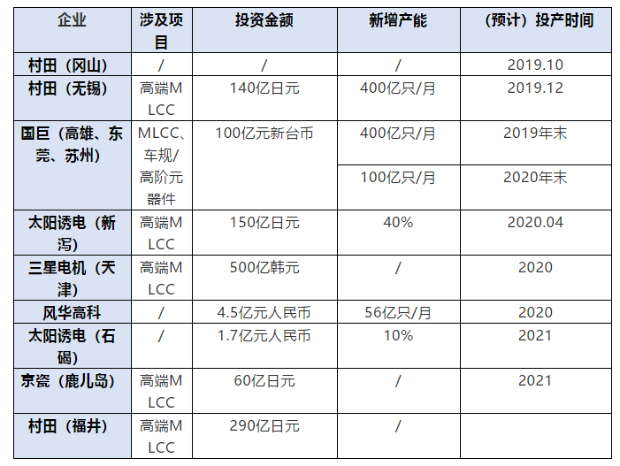 全球主要MLCC廠商擴(kuò)產(chǎn)情況