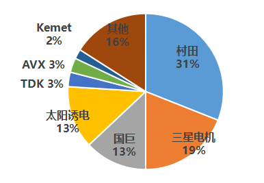 2018年全球前五大MLCC廠商分別是:日本的村田(占比31%)、韓國的三星電機(jī)(占比19%)、中國臺灣的國巨(占比13%)、日本的太陽誘電(占比13%)、日本的東電化(TDK,日本)。總體來看,日韓廠商在MLCC市場中占據(jù)了主導(dǎo)地位。