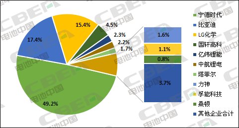 從同比增速看,前十企業中,排名第三的LG化學(中國)由于配套特斯拉(上海)的model 3車型,裝機量較去年同期暴增15674.4%;另外,排名第七的塔菲爾,裝機量較去年同期也實現較大增長,同比增長104.8%。其他8家企業的裝機量較去年同期均有不同程度下滑。