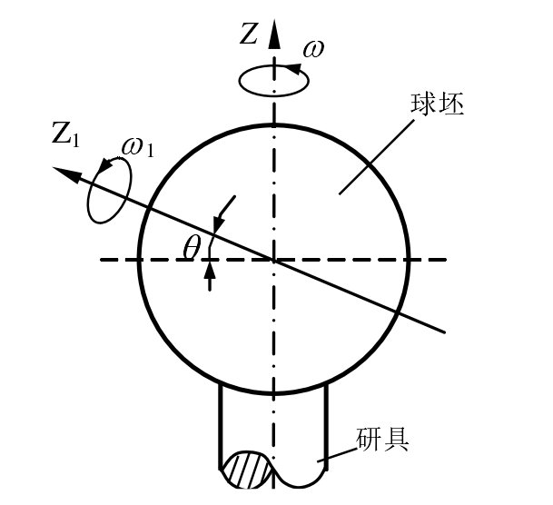 球面的研磨實際是一個不斷加工,使球面向理想球面不斷修正的過程。采用如下圖所示的研磨原理來加工陶瓷球體。