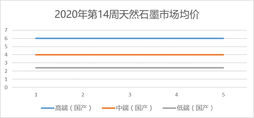 第14周天然石墨市場(chǎng)均價(jià)與上周基本持平,具體均價(jià):高端(國(guó)產(chǎn))6萬(wàn)/噸,中端(國(guó)產(chǎn))4萬(wàn)/噸,低端(國(guó)產(chǎn))2.4萬(wàn)/噸。