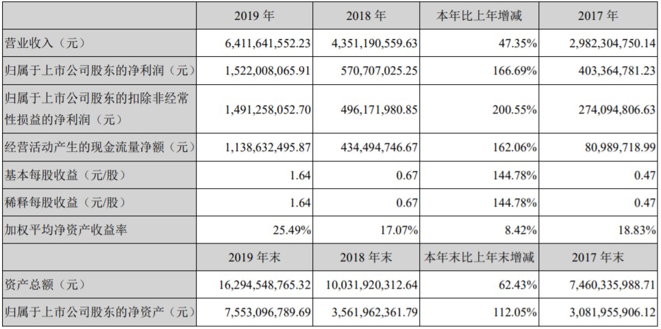 中國(guó)粉體網(wǎng)訊 4月19日晚間,億緯鋰能(300014)發(fā)布2019年年報(bào),去年公司實(shí)現(xiàn)營(yíng)業(yè)收入64.12億元,同比增長(zhǎng)47.35%;凈利潤(rùn)15.22億元,同比增長(zhǎng)166.69%;扣除非經(jīng)常性損益的凈利潤(rùn)為14.91億元,同比增長(zhǎng)200.55%;每股收益1.64元;公司擬每10股派發(fā)現(xiàn)金紅利1.7元(含稅),每10股轉(zhuǎn)增9股。