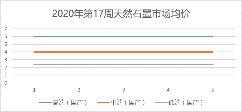 第17周天然石墨市場均價與上周基本持平,具體均價:高端(國產)6萬/噸,中端(國產)4萬/噸,低端(國產)2.4萬/噸。
