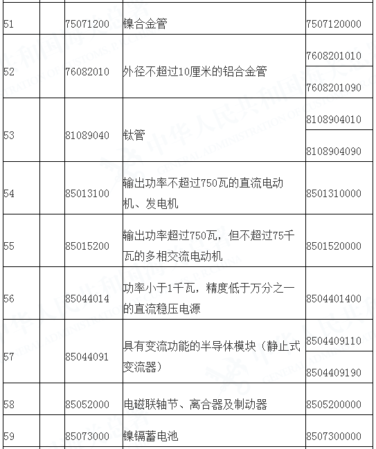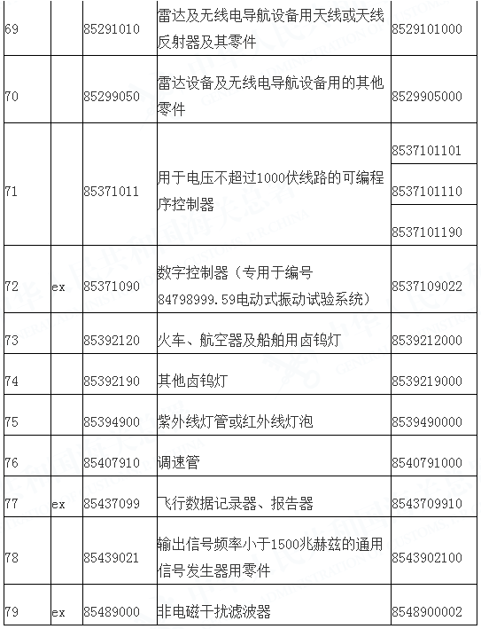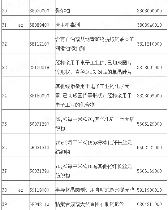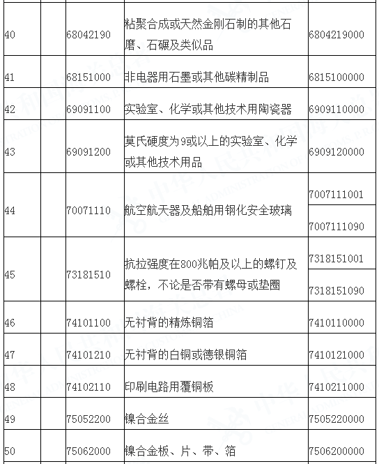 此次排除措施涉及商品均已有對應10位海關商品編號,列于下表供申報時參考。