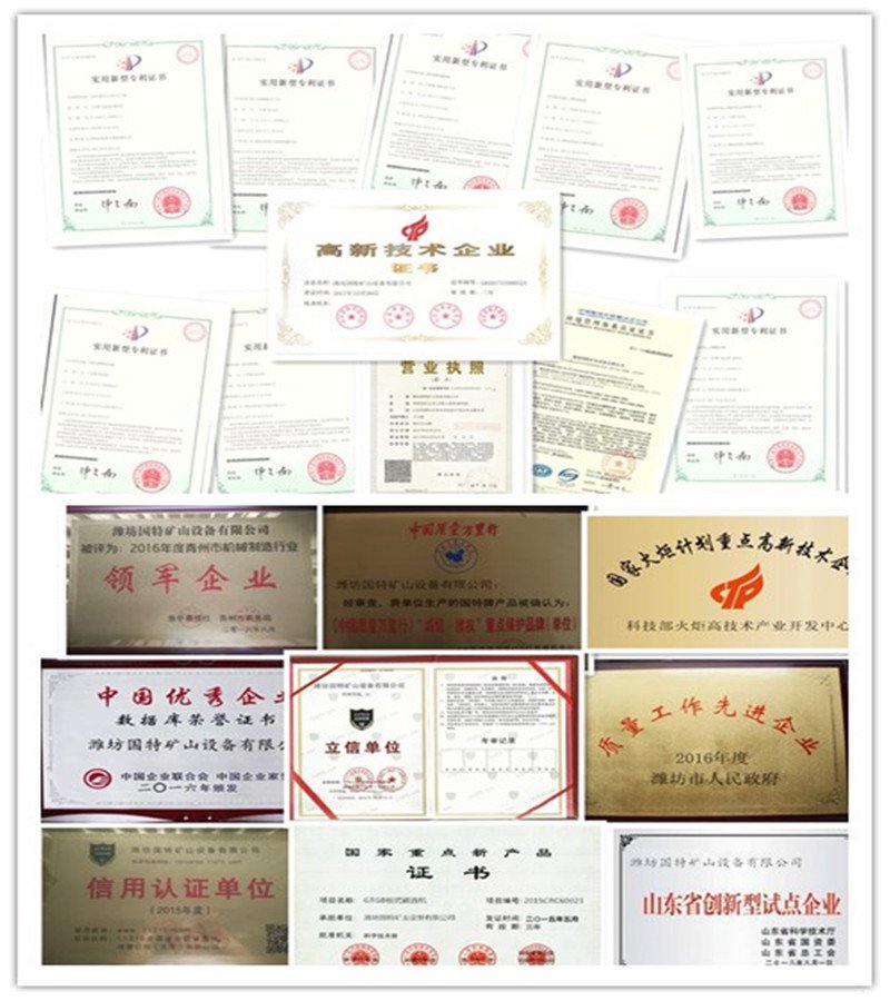 濰坊國特礦山設(shè)備有限公司總部坐落于工業(yè)發(fā)達(dá)的山東省青州市經(jīng)濟(jì)開發(fā)區(qū),占地面積50000平方米,是國家高新技術(shù)企業(yè),公司產(chǎn)品先后通過ISO9001質(zhì)量體系認(rèn)證、環(huán)境體系認(rèn)證、安全管理體系認(rèn)證、歐盟ce認(rèn)證、擁有國家專利幾十項(xiàng)。產(chǎn)品遠(yuǎn)銷海外多個(gè)國家,為客戶提供成套設(shè)備生產(chǎn)線及技術(shù)服務(wù)。