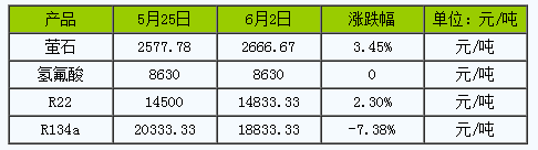 近期汽車行業銷售較之前有所改善,但是終端下游制冷劑市場走勢行情仍顯低迷,對于制冷劑需求沒有明顯改善,國外經濟不斷復蘇,制冷劑終端出口或將好轉,然國內空調行業開工低位,維修售后需求疲軟,整體來看,國外需求或將迎來上漲。目前制冷劑R22生產廠家負荷不高,庫存在合理區間,市場價格仍震蕩,而市場有價無市局面顯現,國內大企業R22價格主流為15500-17000元/噸水平。國內R134a市場價格走勢下滑,生產企業裝置開工率維持低位,目前下游開工不高,R134a需求冷清,近期下游行業采購不積極,價格小幅回落,下游需求沒有明顯改善,螢石市場漲幅受一定的限制。