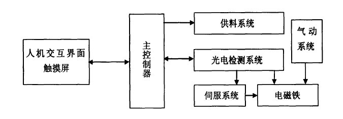 分選系統(tǒng)的作用主要是把光電檢測系統(tǒng)檢測發(fā)現(xiàn)的次品從物料中剔除,它由伺服系統(tǒng)、帶吸管的執(zhí)行器和氣動系統(tǒng)組成。物料顆粒從檢測點運動到分選點時,執(zhí)行器也運動到相應位置,并在雜質(zhì)到達執(zhí)行器的位置時使雜質(zhì)被和氣動系統(tǒng)相連的吸管吸走,合格品沿正常運動軌道落入合格品槽。