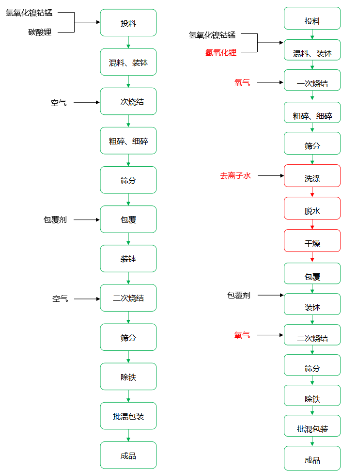 普通三元正極材料生產(chǎn)工藝vs高鎳三元正極材料生產(chǎn)工藝