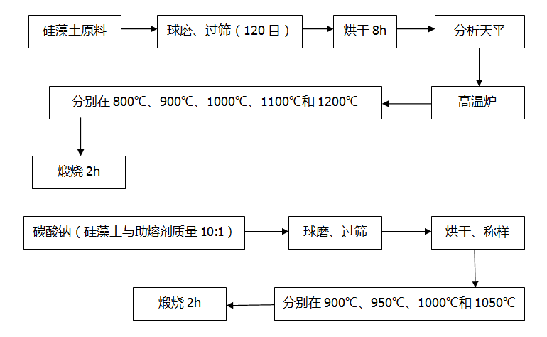 米增財等在《硅藻土煅燒處理及其孔隙性能研究》一文中,運用煅燒法以及添加助溶劑預處理手段,來探究其高溫燒結下能否保持一定原始孔隙吸附性能。