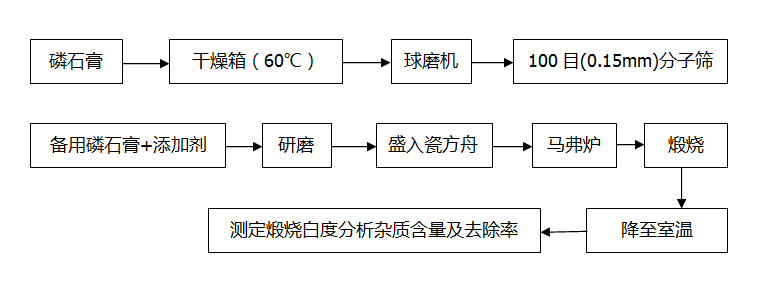方官濤等在《磷石膏煅燒過程中添加劑對其雜質和白度影響》一文中,對磷石膏進行球磨、篩分,考察了煅燒溫度、煅燒時間、添加劑量對磷石膏中鐵、有機碳的脫除情況及磷石膏白度的影響進行試驗。