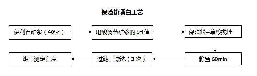 孫世陽曾以伊利石為研究對象,采用伊利石泥漿為原料進行伊利石漂白試驗的研究工作。研究了亞硫酸氫鈉—鋅粉漂白工藝、保險粉漂白工藝和煅燒漂白工藝對漂白效果的影響。結果表明,伊利石白度由原礦的72%提高到80%、80.12%和81.2%。與亞硫酸氫鈉—鋅粉漂白工藝和保險粉漂白工藝相比,煅燒工藝漂白可節約成本14%以上。