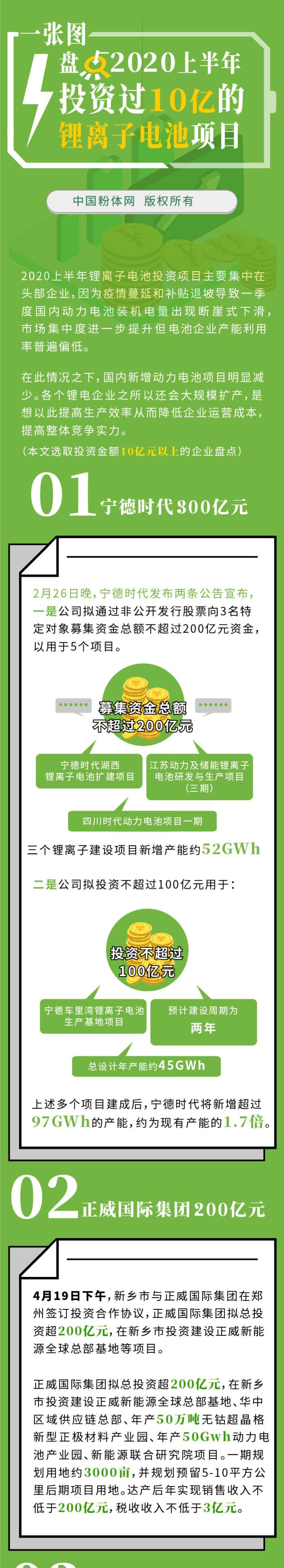 【原創】一張圖盤點2020上半年投資過10億的鋰離子電池項目