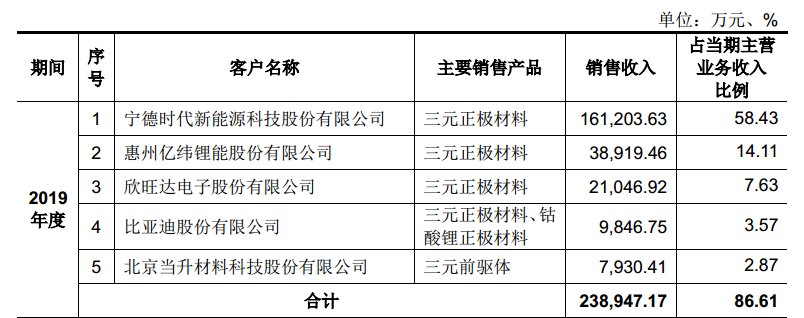 容百科技2019年前五大客戶