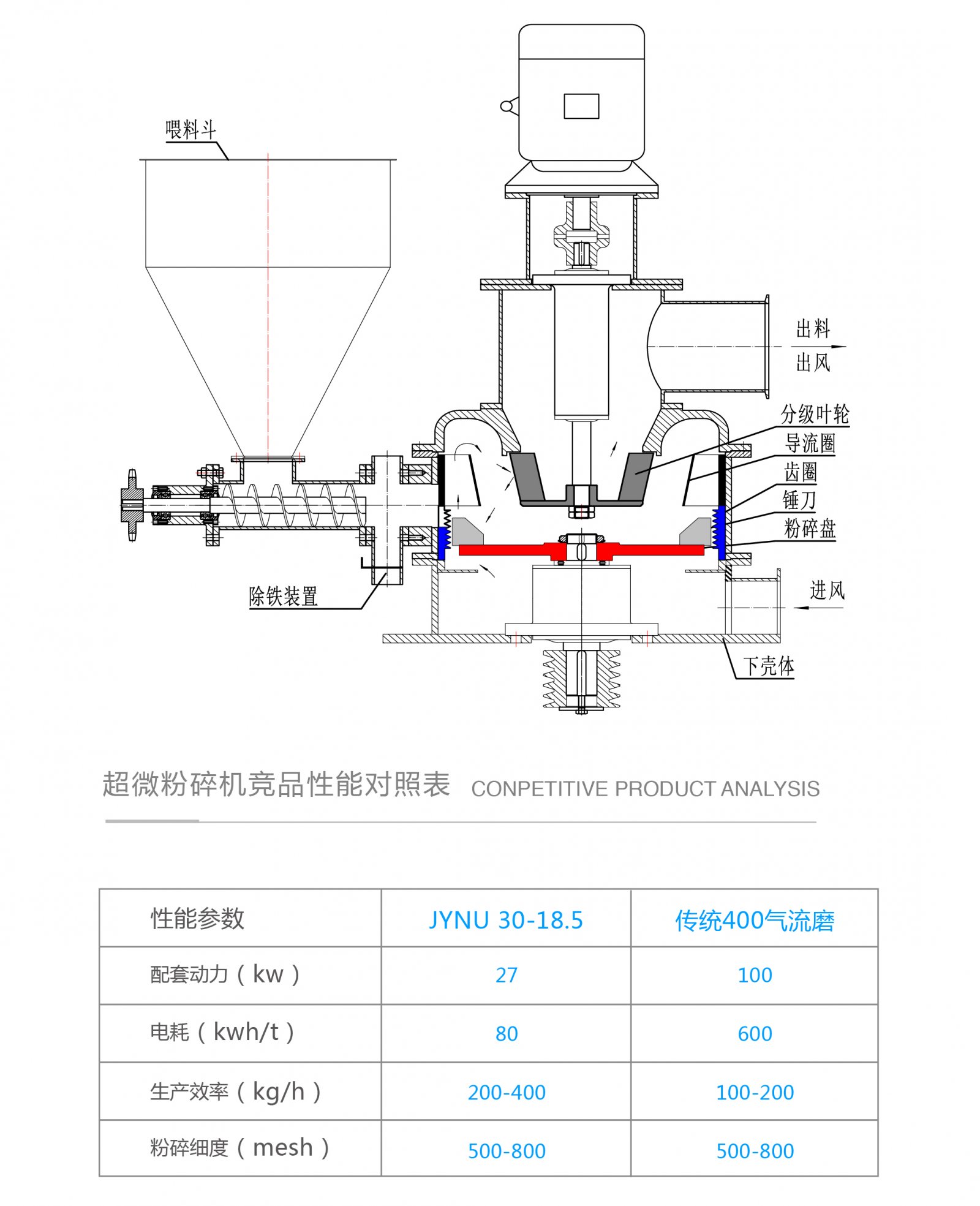 捷怡納超微粉碎機(jī)采用立軸、剪切式粉碎,無篩、氣流分級(jí),負(fù)壓、氣力輸送,獨(dú)特的結(jié)構(gòu)設(shè)計(jì),優(yōu)化的參數(shù)配置,使得該產(chǎn)品產(chǎn)量高、能耗低、細(xì)度高、粉碎溫度低、粉碎環(huán)境潔凈無塵,在粉碎機(jī)應(yīng)用的各個(gè)領(lǐng)域受到廣大用戶的青睞。