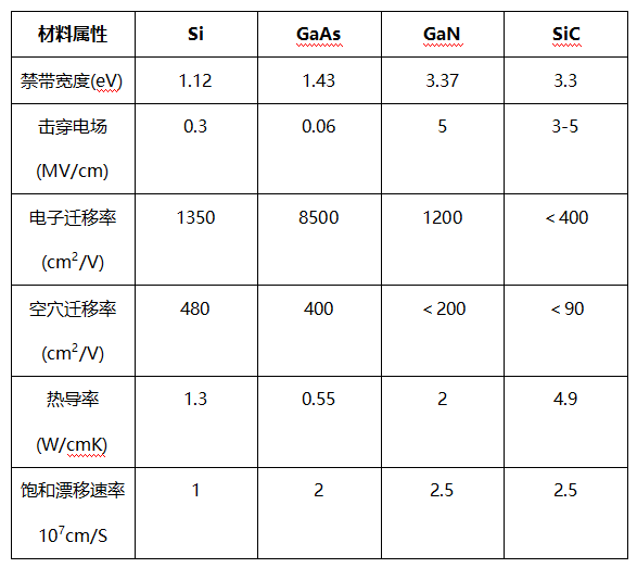 不同半導(dǎo)體材料性能對(duì)比