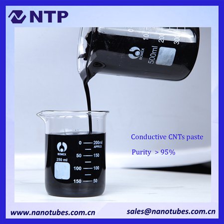CNT導(dǎo)電漿料是一種用于鋰電池的新型高效導(dǎo)電劑,可替代傳統(tǒng)的的導(dǎo)電碳黑、導(dǎo)電石墨、導(dǎo)電碳纖維等傳統(tǒng)導(dǎo)電劑,具有超高長徑比、超大比表面積,超低體積電阻率等優(yōu)越特性,可應(yīng)用于各種電極材料中,如LFP,LCO,LMN,NCM,石墨等,添加量僅為0.5-1%,可顯著提高電芯以下性能: