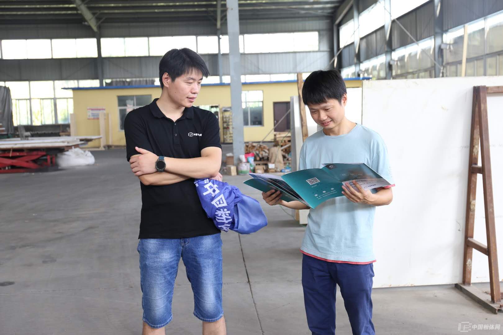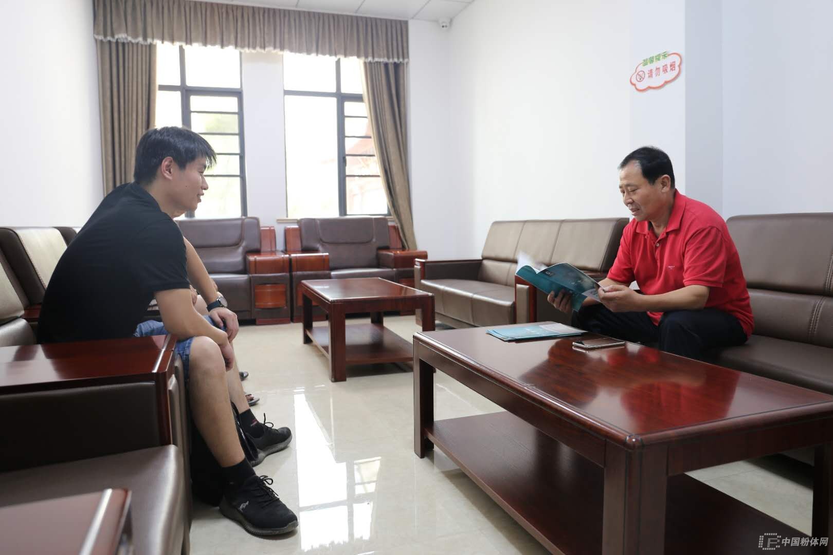 湖北津馳程董事長(左一)與中國粉體網宋總(右一)在交流