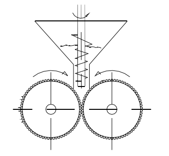 一種對(duì)齒滾壓式造粒機(jī)工作原理簡(jiǎn)圖