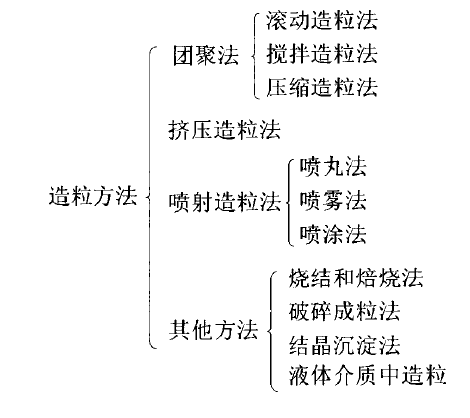 從廣義上講,任何使小顆粒團(tuán)聚成較大實(shí)體的過程和任何“巨大”物塊分成較小顆粒的過程都可稱為造粒過程。前者稱為粉體造粒,后者可稱為破碎造粒。其中,粉體造粒技術(shù)從廣義上也可分為兩大類,一類是成型加工法,主要是將粉狀物料通過特定的設(shè)備和方法,處理成為滿足特定形狀、尺寸、成分、密度等的團(tuán)塊物料,此方法特別注意控制單個(gè)團(tuán)塊的性質(zhì);另一類是粒徑增大法,主要是把細(xì)粉體團(tuán)聚成比較粗的顆粒,這類方法注意的是控制整堆物料的性質(zhì)。