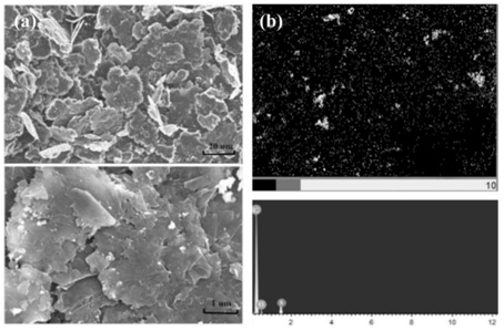 本發(fā)明的方法所制備的硫化膨脹石墨與具有大粒徑厚片層膨脹石墨相比,經(jīng)過添加SO3‑P和DMF研磨改性的硫化膨脹石墨的微觀表面多孔性表現(xiàn)出顯著的增加,以及粒徑明顯的減小。