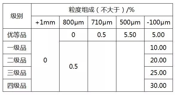 平板玻璃用石英砂原料粒度組成
